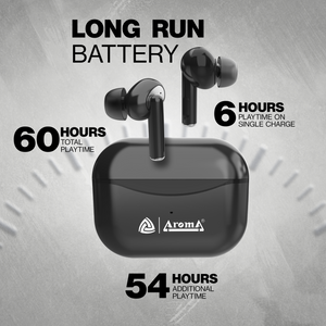 Introducing the Aroma NB132 Delight, your ultimate companion for immersive audio experiences. These True Wireless Stereo (TWS) earbuds offer an astonishing 60 hours of playtime, ensuring uninterrupted enjoyment of your favorite music, podcasts, or calls. With an IPX4 water resistance rating, they're durable enough to withstand sweat and light splashes, making them perfect for workouts or outdoor activities.