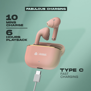 Introducing the Aroma NB140 Fabulous, a state-of-the-art True Wireless Stereo (TWS) product designed to revolutionize your audio experience. With an impressive 24 hours of playtime, you can enjoy uninterrupted music, podcasts, and calls throughout your day. Its IPX4 water resistance rating ensures durability in various conditions, making it perfect for workouts or outdoor adventures. Thanks to quick charging capabilities, you can swiftly recharge your earbuds for extended use. Immerse yourself in rich, resonant sound with deep bass quality and 10mm audio drivers, delivering an unparalleled auditory sensation. Featuring Bluetooth V5.0 technology, it offers seamless connectivity with your devices, while dual pairing functionality allows connection with multiple devices simultaneously. Moreover, the built-in voice assistant enables hands-free control, adding convenience to your daily activities. Elevate your audio experience with the Aroma NB140 Fabulous.