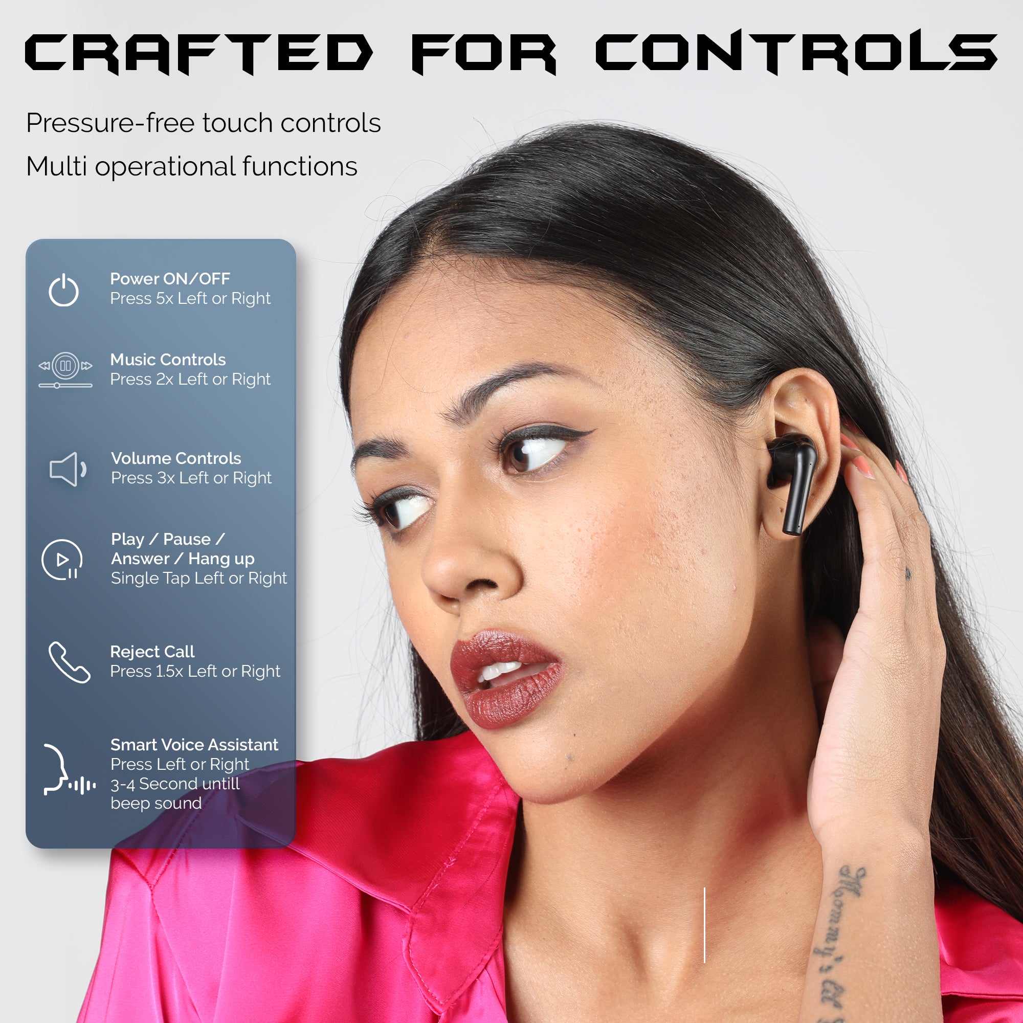 Short Press power button to Receive / Disconnect calls